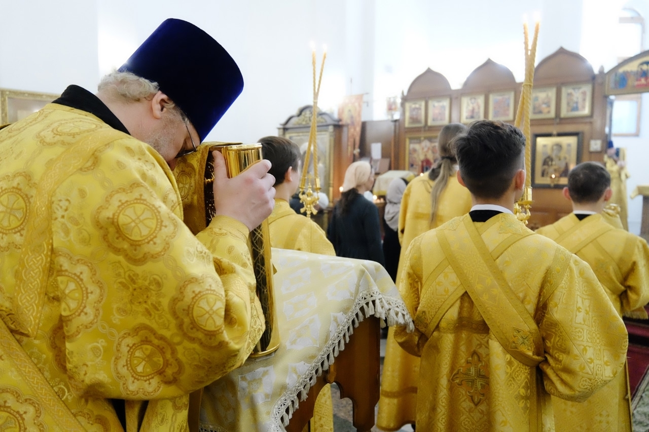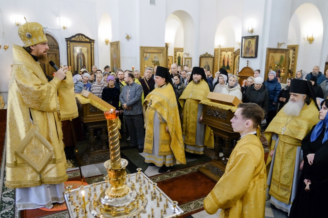 Правящему архиерею в день своего тезоименитства сослужил настоятель Богоявленского монастыря Игумен Нестор (Болков) с духовенством и братией.