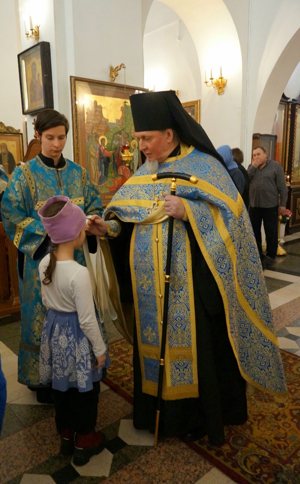 Иеродиакон Петр (Томин), иеродиакон Макарий (Кулаев ). После чтения Святого Евангелия Игумен Нестор совершил помазание верующих освященным елеем и был роздан освященный на литии хлеб. Богослужебные песнопения исполнял хор под управлением регента Екатерины Меньщиковой.