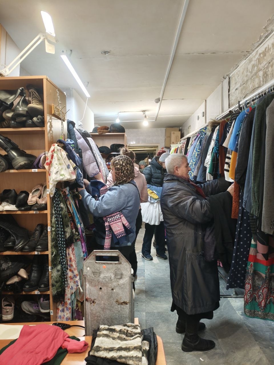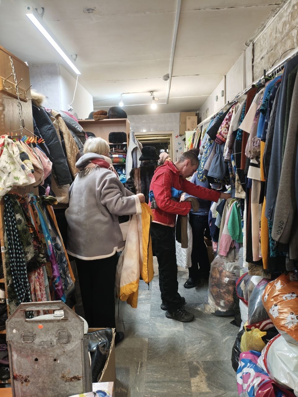 Предварительно волонтеры разделили вещи по категориям, а затем помогали людям с примеркой. Подобная акция в монастыре проводится каждую неделю.