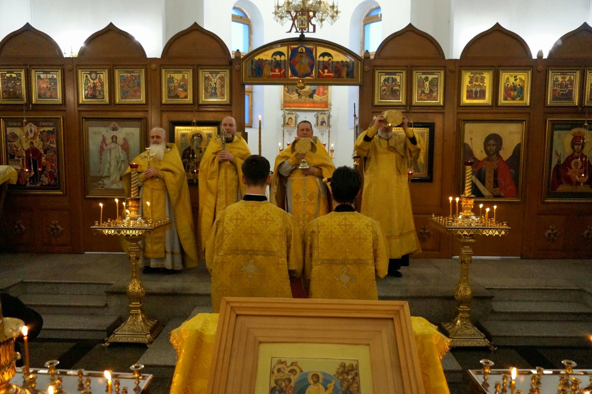 Игумену Нестору(Болкову) сослужили клирики Богоявленского епархиального мужского монастыря :