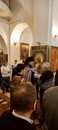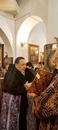 За богослужением был прочитан отрывок из Евангелия от Луки (Лк.24:36-53), в котором рассказывается о явлении воскресшего Иисуса Христа своим ученикам, которые первоначально приняли Его за духа. Чтобы разубедить их, Господь предлагаем ученикам прикоснуться к Нему и вкушает перед ними печеную рыбу и сотовый мед. Он отверзает им ум к уразумению Писаний и пророчеств о Нем, предсказывает всеобщее покаяние и прощение грехов, «начиная с Иерусалима». После этого Иисус обещает послать на учеников в Иерусалиме «обетование Отца» (Духа Святого) и, выйдя с ними в пределы Вифании, возносится на небо. Ученики возвращаются в Иерусалим, прославляя и благословляя Бога.Во время чтения канона верующих помазывают освященным елеем.