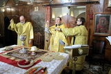 После сугубой ектении была прочитана молитва о Святой Руси.В конце богослужения Игумен Нестор с клириками святой обители и хор пропели тропарь, кондак и величание преподобным Антонию и Феодосию Печерским.