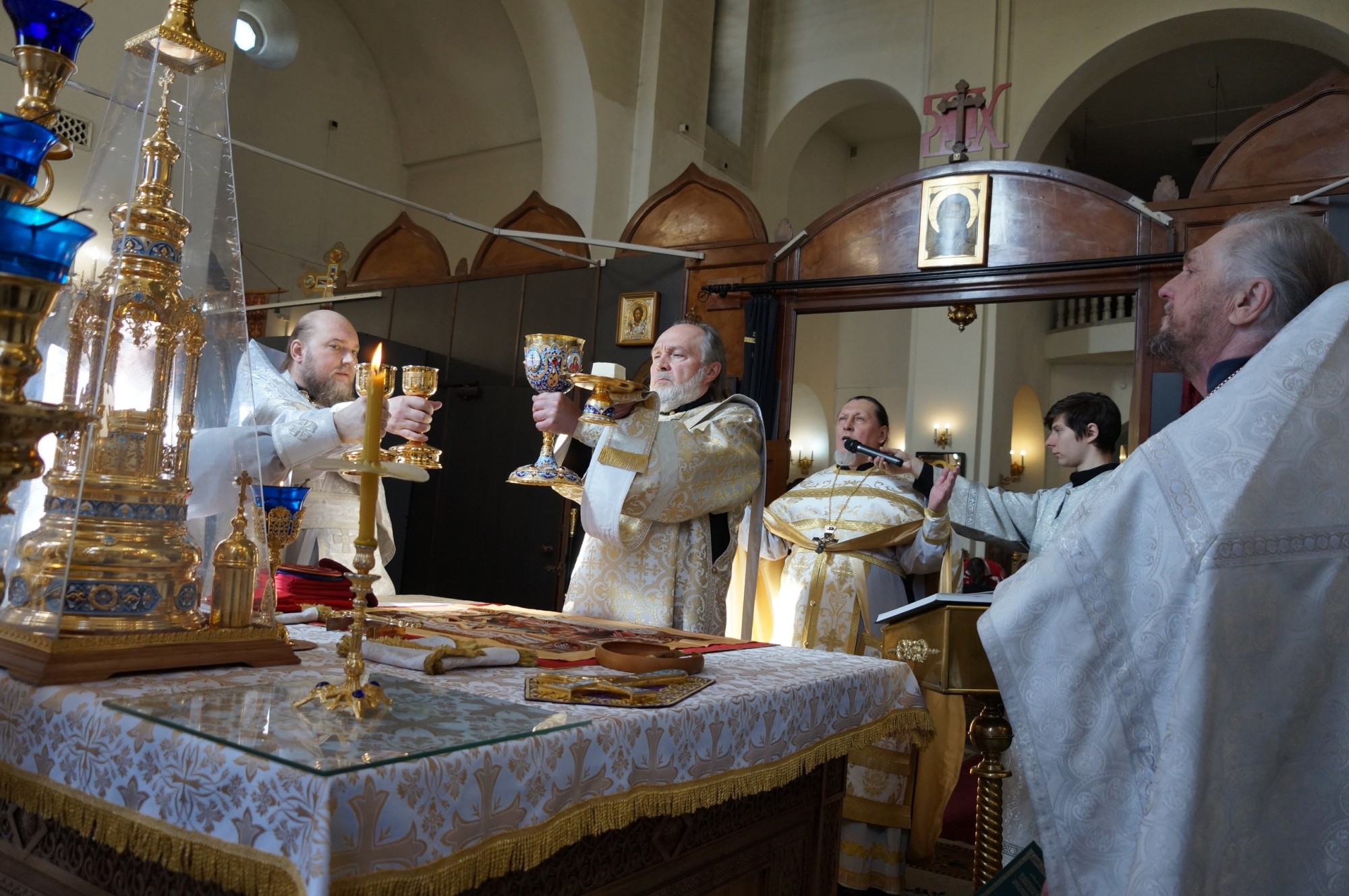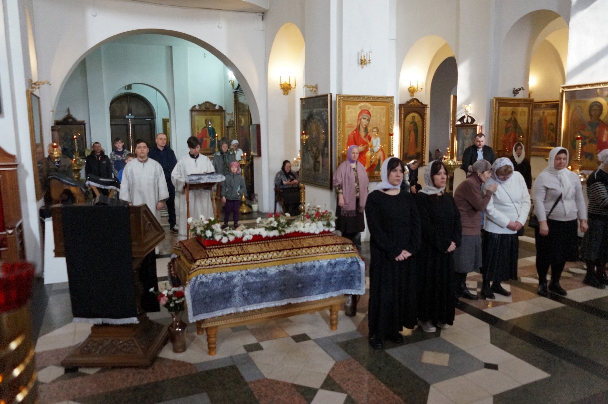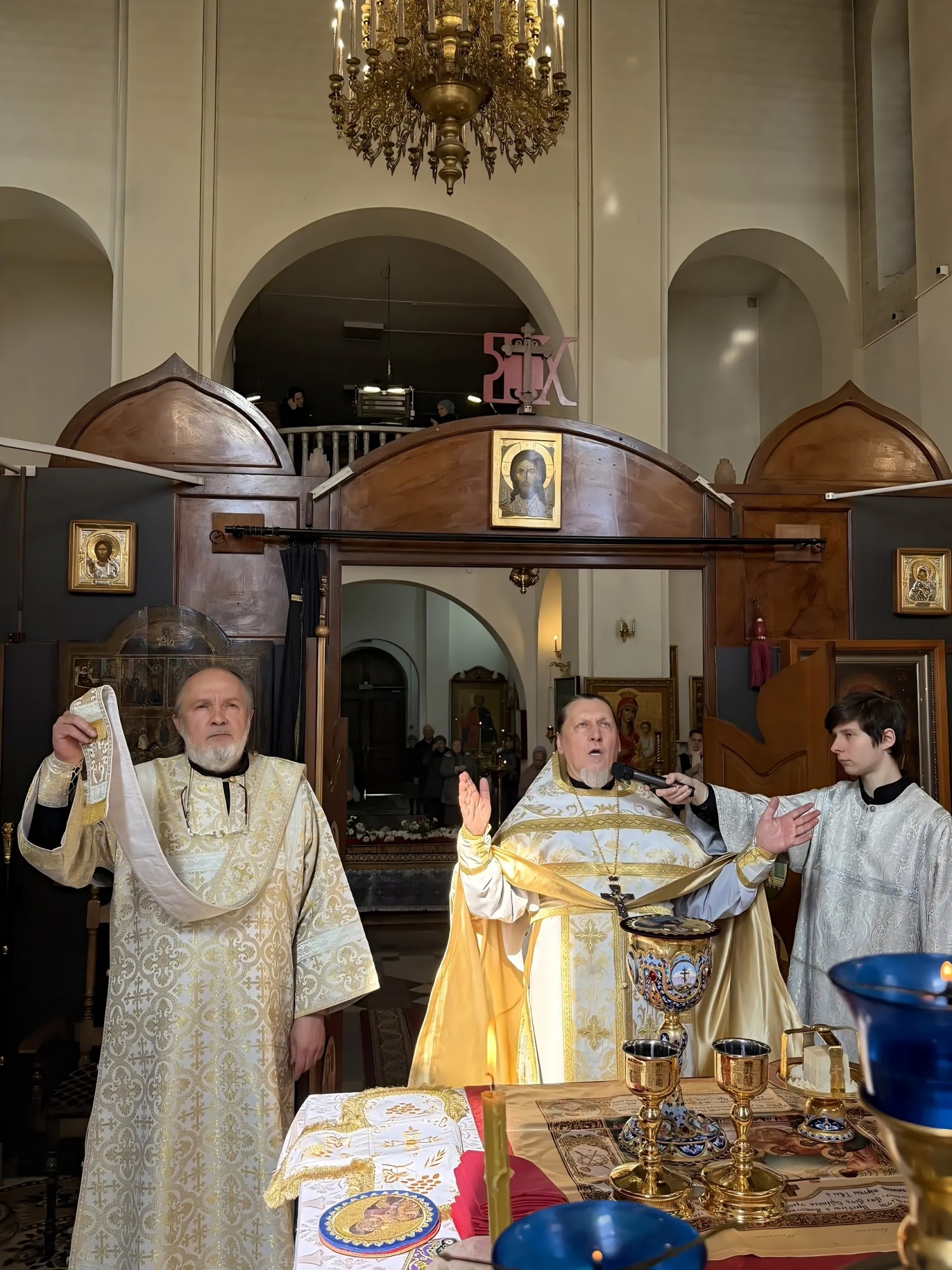 иеродиакон Петр (Томин ). По традиции, в конце богослужения Великой Субботы, были освящены хлеб и вино перед Святой Плащаницей .
