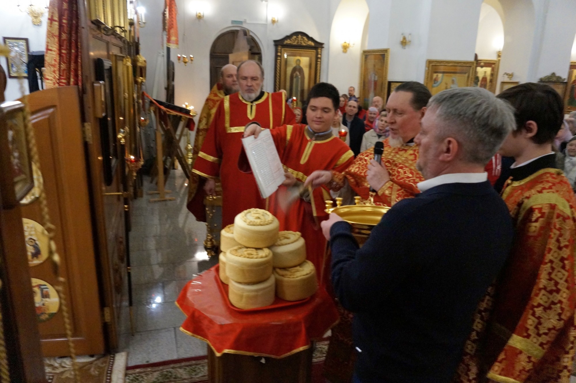 И от полноты Его все мы приняли и благодать на благодать,ибо закон дан чрез Моисея; благодать же и истина произошли чрез Иисуса Христа. В конце Литургии после заамвонной молитвы Игумен Нестор (Болков ) совершил освящение артоса по особому чину. Всю Светлую седмицу артос будет находиться в храме и во время крестных ходов обноситься вокруг храма. Песнопения Пасхальной службы в Богоявленском мужском монастыре исполнял хор под управлением регента Екатерины Меньщиковой.