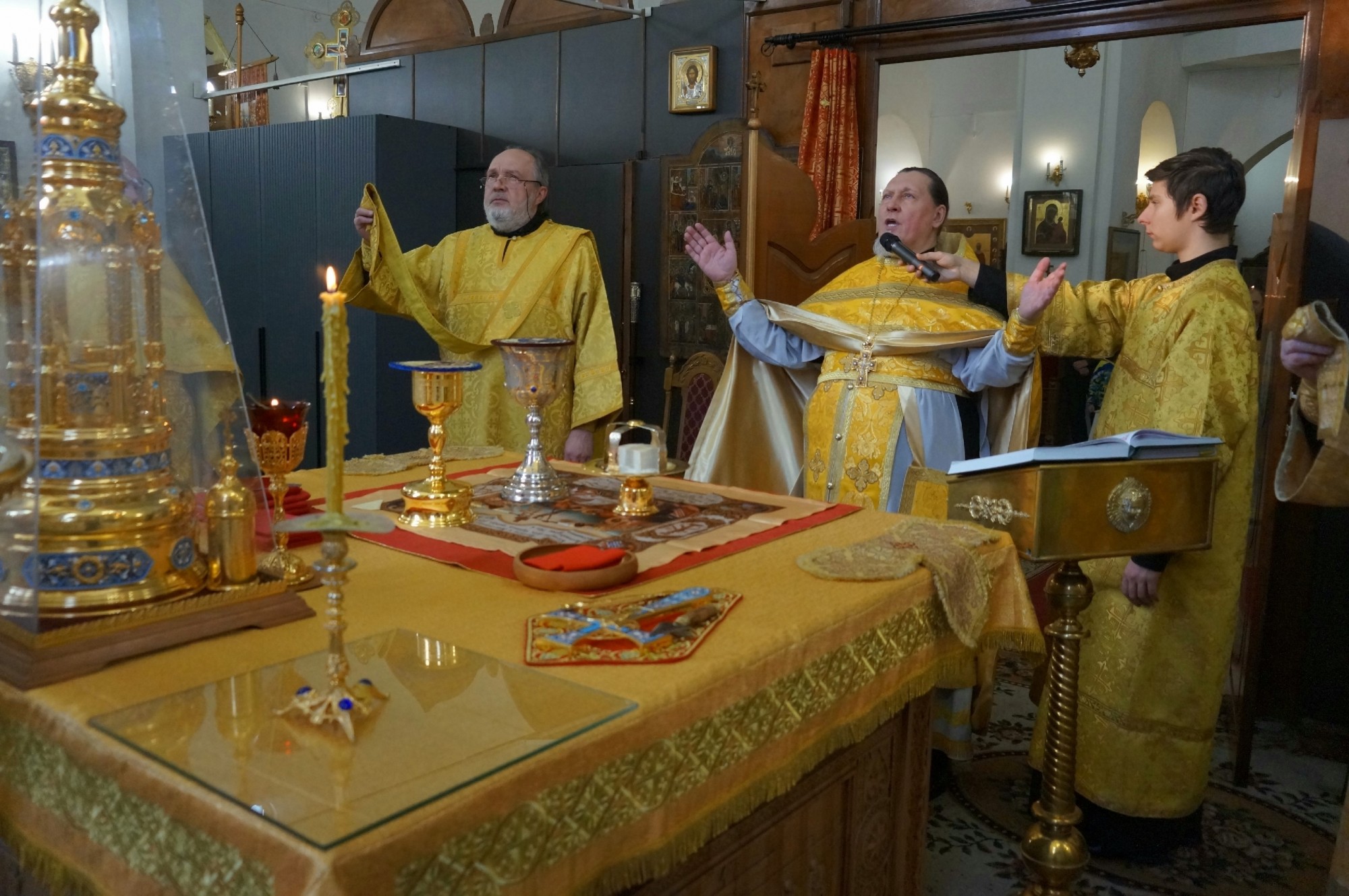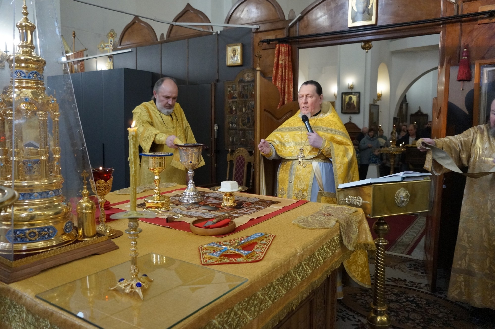 Игумену Нестору (Болкову) сослужили клирики Богоявленского епархиального мужского монастыря: иеромонах Иоанн (Решетов), иеромонах Феодор (Шабакин).